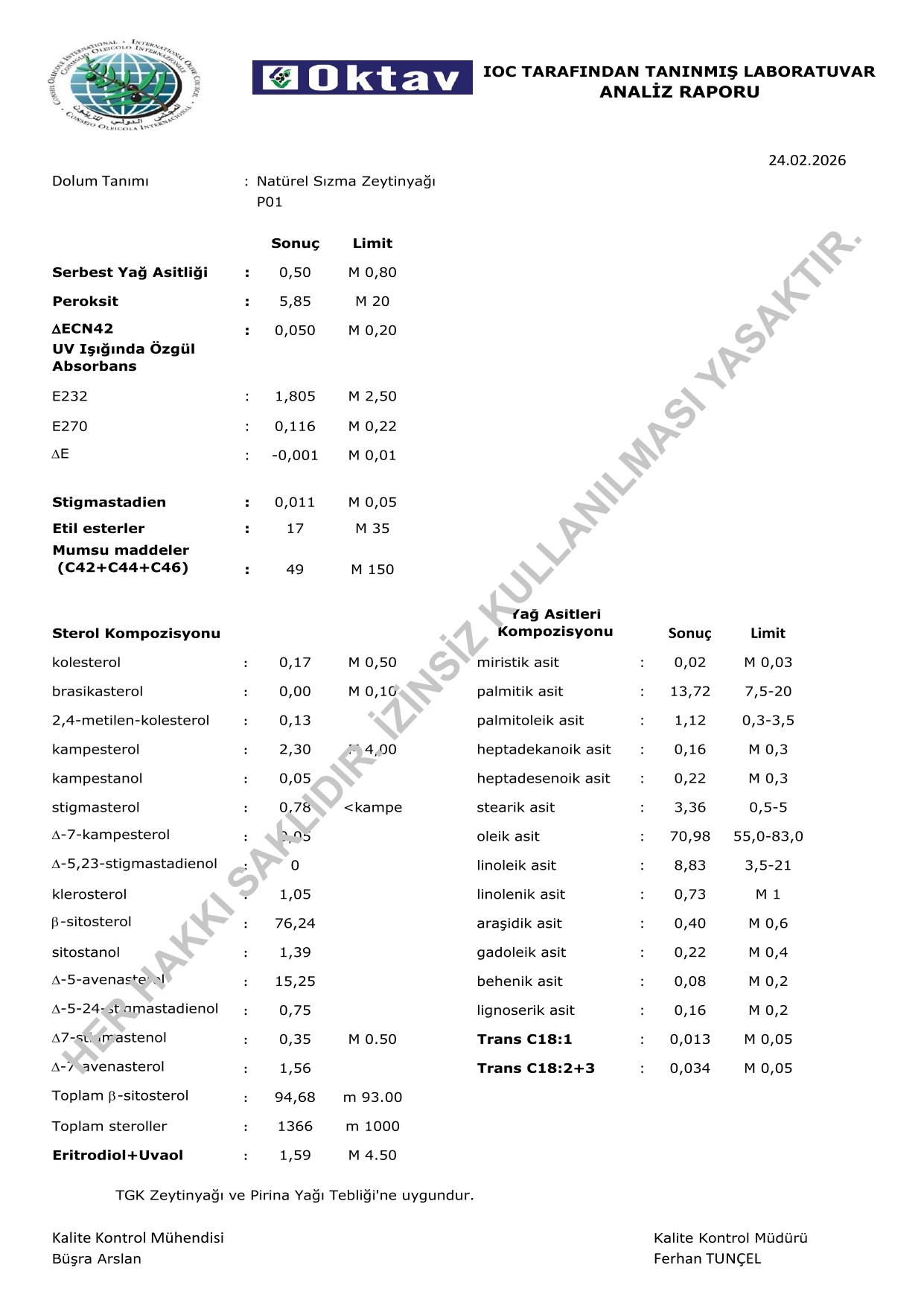 Avilo Zeytinyağı Analiz Raporları